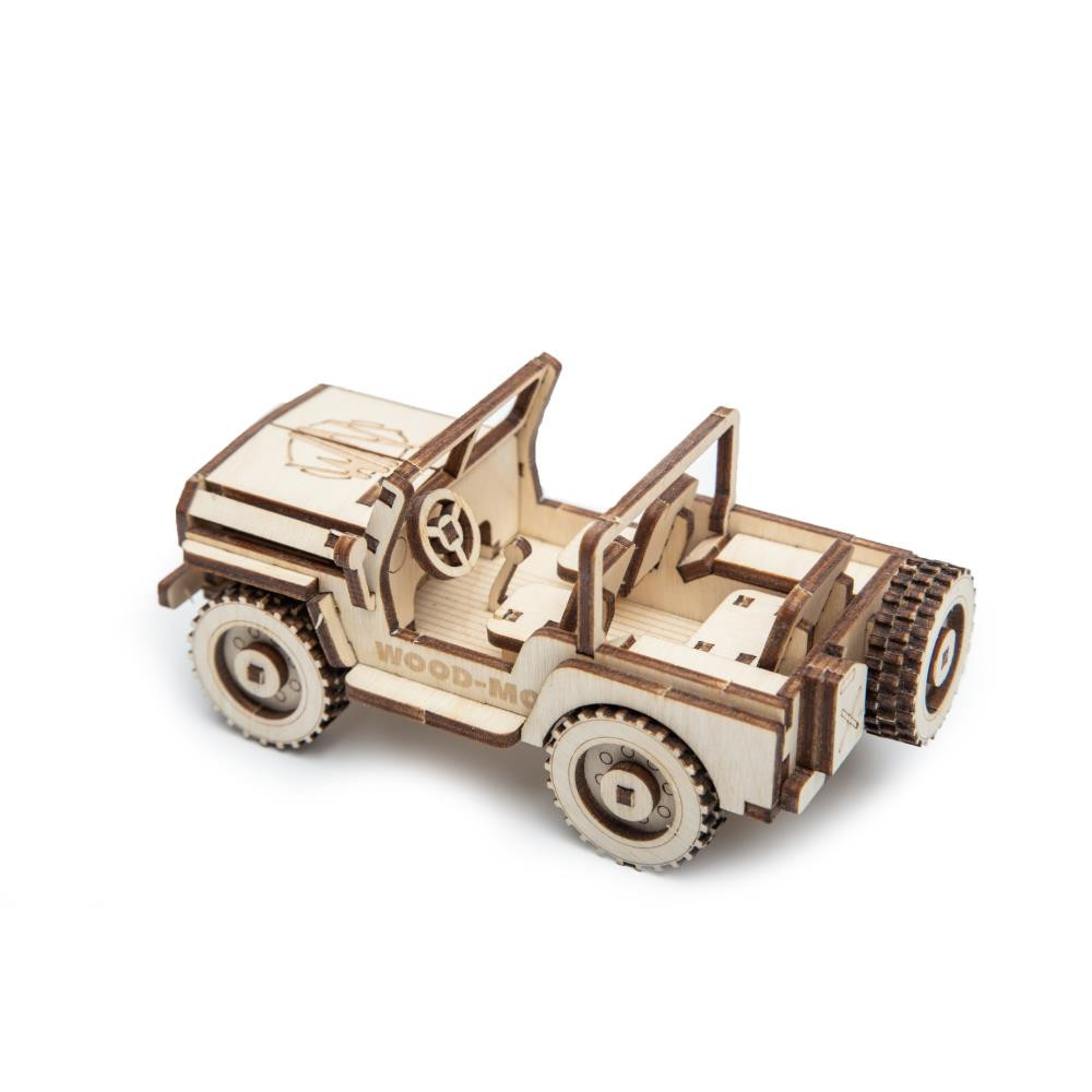 Собранная модель напомнит вам легендарные военные внедорожники, носившихся когда-то по огненному полю с отважными полководцами. Данный экземпляр имеет 4 вращающихся на деревянных подшипниках колеса. Модель легко собирается, оставляя приятные воспоминания. Данный конструктор могут собрать как взрослые, так и дети от 5 лет, получив приятные впечатления от легкой сборки!