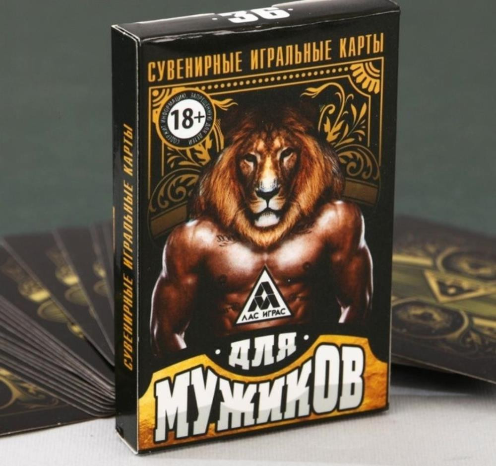 Сувенирные игральные карты. Попробуйте классическую колоду в новом исполнении. На каждой карте вы найдёте изображения атрибутов настоящих мужчин. В наборе 36 карт.