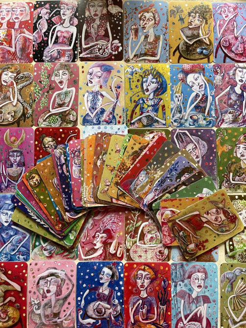 108 штук, размер 7 Х 10 см. Тактильно очень приятные, яркие, красочные, в каждой карте своя интересная история.