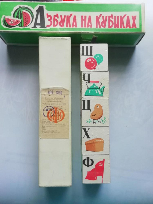 г. " Краснокамск" Пермской области. Фабрика Детской игрушки. Изг: Ноябрь 1984 год, кубики из дерева. (дефект на коробке)