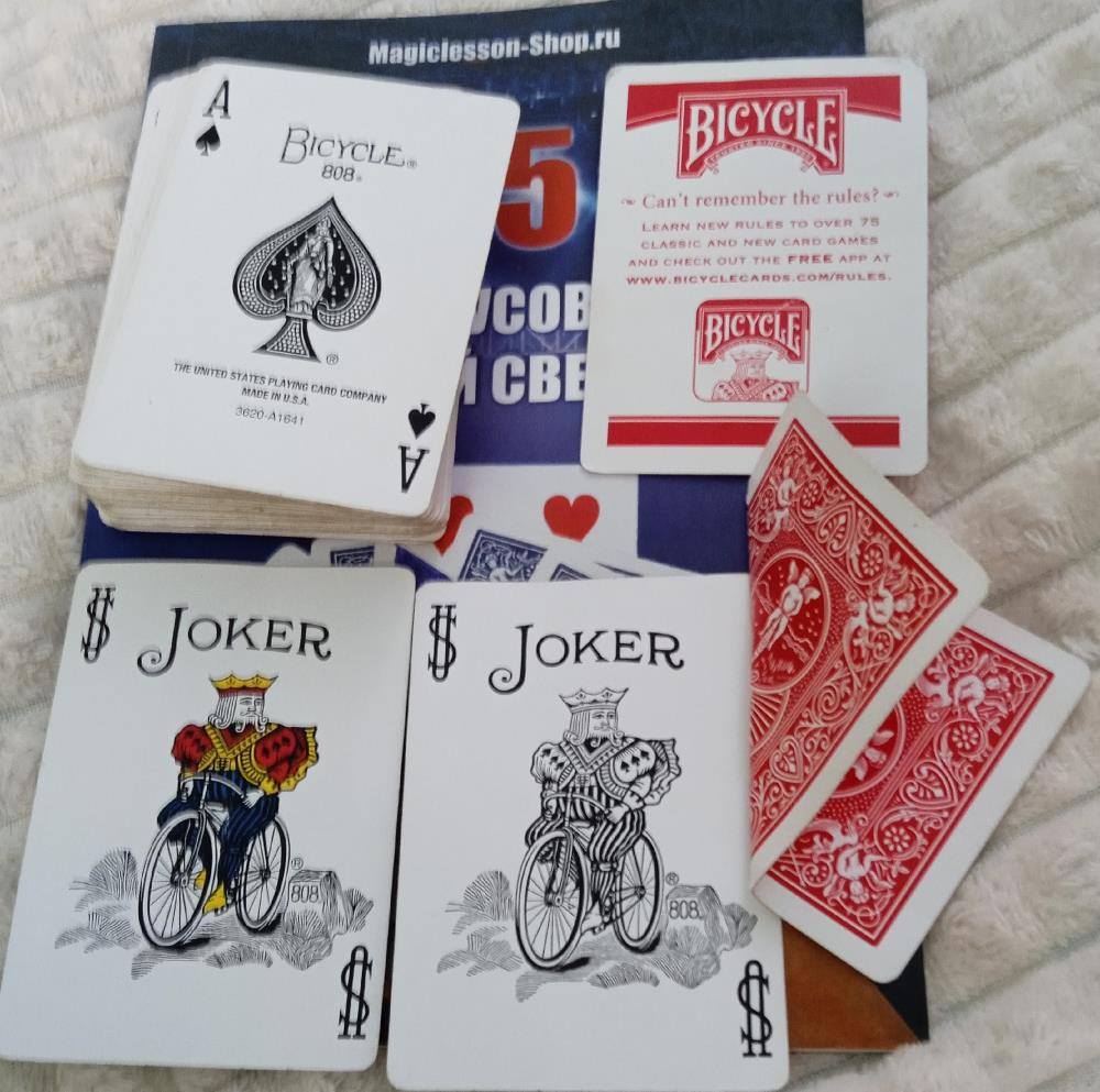 Bicycle red,450 рублей,52 карты+2 джокера+карта с двойной рубашкой