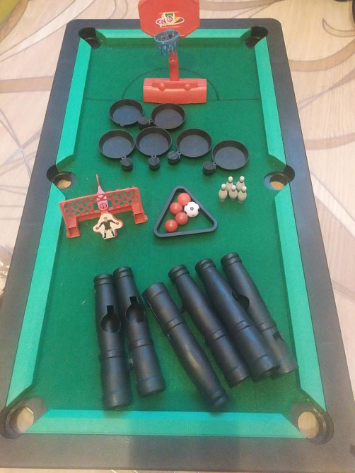 Можно играть в бильярд, футбол, баскетбол. Картинки меняют игру. Для игры в бильярд, нет кия(((