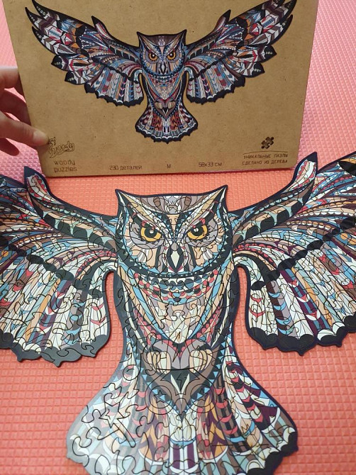 Б/у один раз. Время сбора от 2х часов. Размер М кол-во деталей 230. Размер 58*33см. Пазлы красочные, деревянные