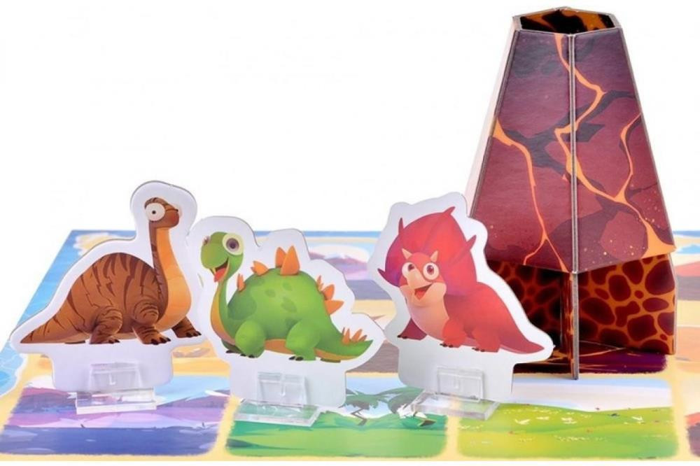 «Диноостров» - это интересная кооперативная детская настольная игра для самых юных. Играйте все месте, ведь у вас общие цели. Помогите динозаврикам встретиться друг с другом в определённых местах острова. Но берегитесь лавы.