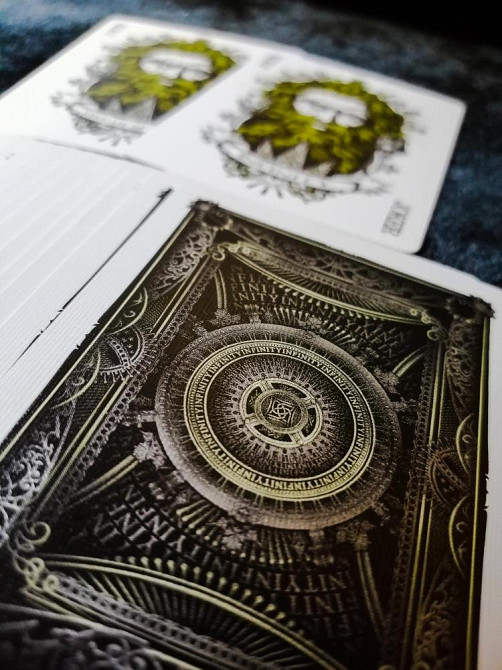 Дизайнерские игральные карты Infinity от американской студии Ellusionist. Карты напечатаны с использованием металлизированных чернил, красиво отражаются на свету. Элитные коллекционное карты, которые уже не и выпускаются. Изготовлены в США
