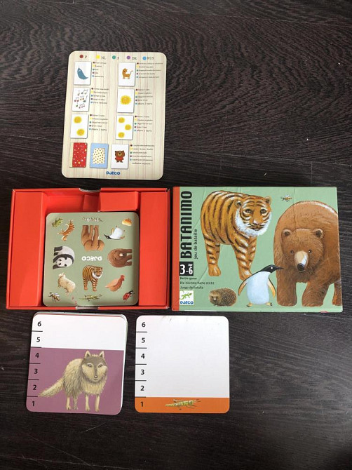 Настольная игра Батанимо от Джеко. Карточная игра для самых маленьких - сравнение животных по размеру, размер также обозначен цифрами, учит определять больше/меньше. Все компоненты на месте. Игра в отличном состоянии. Забирать на Бажова 68