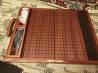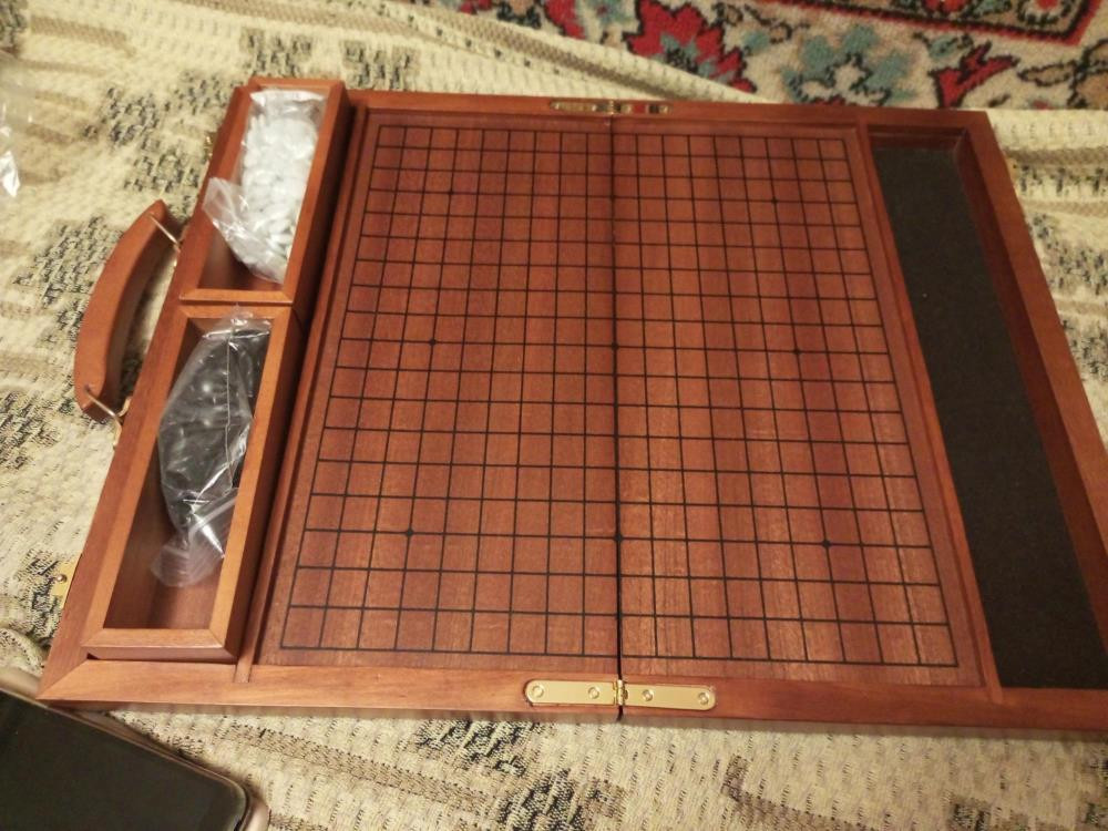 В состав настольной игры Го в чемоданчике входят: 181 камень чёрного цвета и 180 камней белого цвета, изготовленных из пластика, чемодан из дерева.