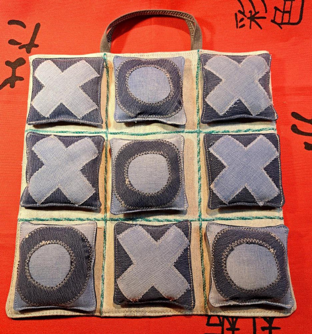 HandMade "КРЕСТИКИ - НОЛИКИ" из джинсы ЭКСКЛЮЗИВ, переносной игровой набор + сумочка-экран от бренда SамШьюнг ГуГа ✂️ 2 в 1 (ИГРА "поле с клетками" + сумка для хранения фишек)
