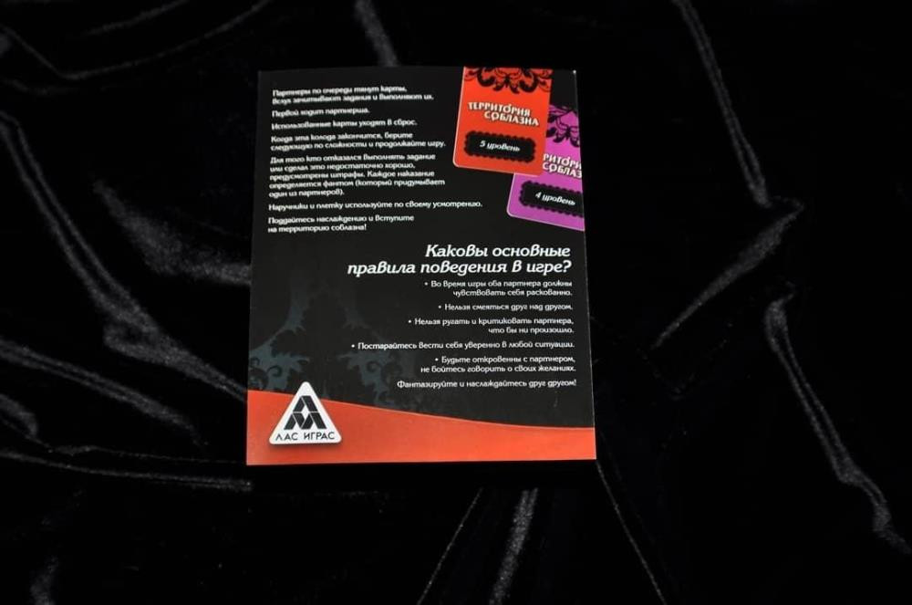 Игра содержит 50 карточек с заданиями разного уровня сложности. Для начала воспользуйтесь колодой «Узнайте друг друга», она откроет много секретов партнера. С колодой «Смелые фантазии» возбудите воображение откровенными размышлениями на пикантные темы. С карточками «Нежные поцелуи» узнайте новые техники и способы доставить друг другу удовольствие, и тогда можете переходить к колодам «Ласкай меня» и «Сладкая близость» — они послужат достойным финалом романтической ночи. В набор входят приятные аксессуары, которые смогут разнообразить Ваши ласки.