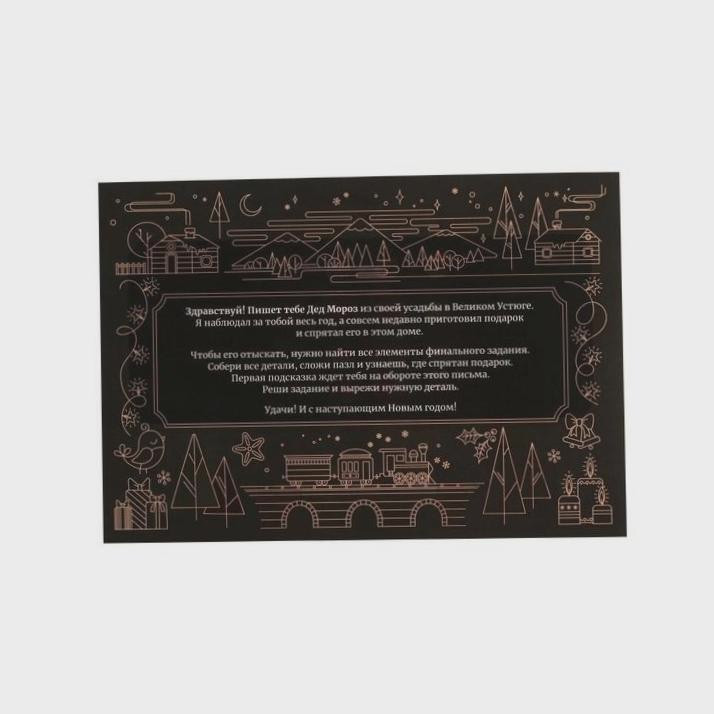 Игра-квест гарантированно понравится как детям, так и взрослым, поскольку найти подарки, пройдя удивительное приключение, намного интереснее, чем просто обнаружить их под елкой. Ваша задача – внимательно изучить инструкцию и разложить все подсказки. Игра начинается!