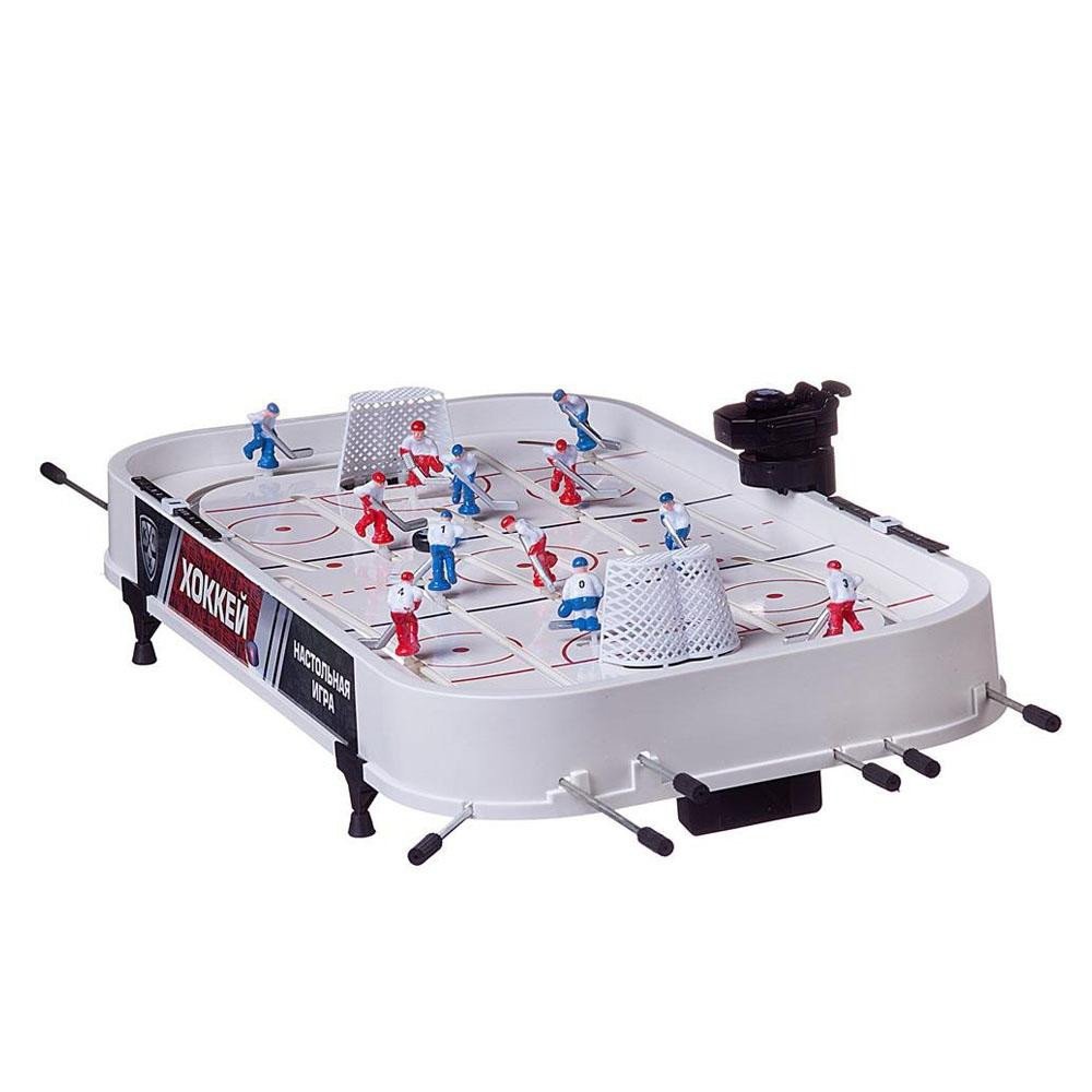 Хоккей – одна из самых любимых спортивных игр у взрослых и детей. Настольная игра «Хоккей КХЛ» от бренда ABtoys позволит устраивать соревнования с друзьями, проводить семейные турниры, обязательно подарит положительные эмоции и обеспечит хорошее настроение. Игра выполнена в современном дизайне. Игровое поле с нанесенной разметкой, возможность игры нападающих за воротами придадут игре динамичность и реалистичность. Защитные бортики с обеих сторон ворот предотвратят вылет шайбы за пределы игровой зоны. Каждую забитую шайбу игроки будут отмечать на индивидуальных счетчиках, установленных на боковых бортах. Взброс шайбы в игру легко и удобно производить, используя специальное устройство, которое нужно разместить на борту игрового поля. Ручки управления имеют резиновые наконечники, которые будут способствовать легкому, уверенному управлению игроками. Надежные устойчивые ножки позволят приподнять игру над столом. Всего на площадке 12 объемных фигурок игроков, по 6 в каждой команде. Играя, ребенок будет развивать моторику рук, улучшать координацию движений и скорость реакций, научится концентрировать внимание. Комплектация: Хоккей (внешние габариты 57х8х29см, размер игрового поля 50х26,5см) съемные ворота – 2шт., устройство для взброса шайбы – 1шт., 12 объемных фигурок игроков, шайба – 2шт., ножки – 4шт., накладки на рычаги управления – 12 шт. счетчики очков – 2шт. Возраст: от 4 лет. Материал: металл, пластик. Количество рычагов управления: 12. Размер коробки: 59 x 8 x 35 см. Вес: 1700 г. Размер 59,1 х 35,9 х 8,1Состав:Полимерные материалы