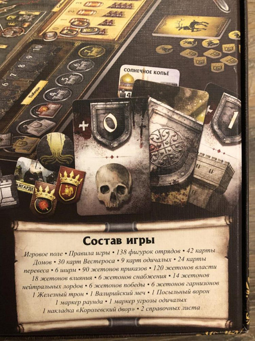 «Игра престолов» — это атмосферная, оригинальная и продуманная настольная стратегия по мотивам популярного цикла романов Джорджа Мартина «Песнь льда и огня», недавно экранизированного в виде высокобюджетного телесериала. Борьба за власть в Семи Королевствах в самом разгаре: подковёрные интриги выливаются в кровопролитные сражения, временные альянсы оборачиваются подлыми предательствами, а то, что веками считалось детскими сказками, оказывается суровой реальностью. Возглавьте один из Великих домов Вестероса и приведите его к победе!