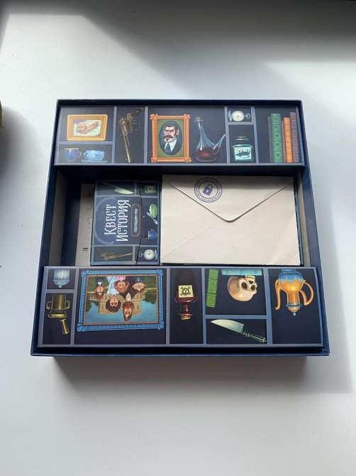 «История наследства»: 44 карты с фактами и подсказками, конверт с описанием преступления.