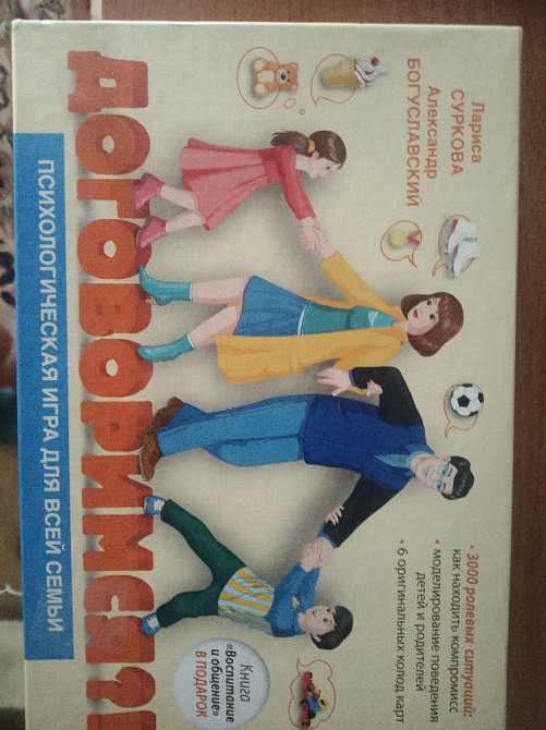 Дорогой друг! Ты держишь в руках увлекательную карточную игру для всей семьи. Она воссоздаёт ситуацию семейного спора, где каждый игрок, используя возможности своей роли, может одобрить или отклонить предложения других участников, прийти к компромиссу или повернуть ход игры в сторону собственного выигрыша. Попробуй создавать стратегии и идти на взаимные уступки - и посмотри, как изменится тактика игры в ответ на твои действия! Примерьте на себя роль любого члена семьи! Что будет, если сын попробует стать «Дедушкой», а папа вдруг решит примерить на себя роль «Мамы»? Создайте стратегию собственного выигрыша, используя свои возможности и способности других игроков! Не бывает безвыходных ситуаций – мы ведь всегда можем договориться! «Детям и родителям важно находить компромисс, уважая желания друг друга» Лариса Суркова, психолог.