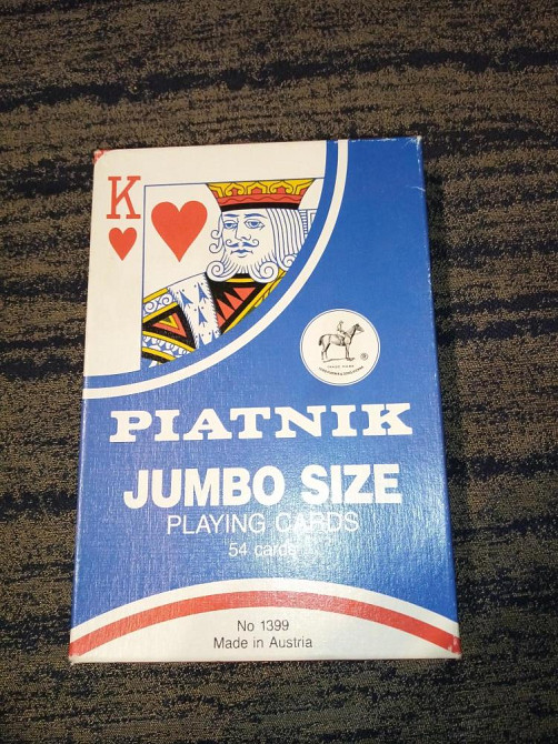 В колоде 54 карты. Размер карт 18*11'5 см. В хорошем состоянии. Производство Австрия.