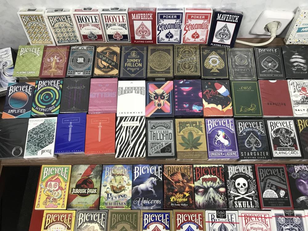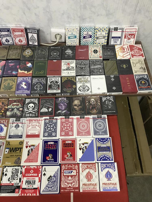 Bicycle, Ellusionist, Theory11, Tally-Ho, Bee, Fournier, EPT, WPT, RPT, Piatnik, Copag, Modiano, Phoenix, Madison, Dan and Dave, Гафф-карты, фокусные карты.