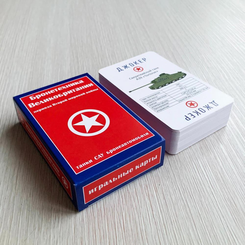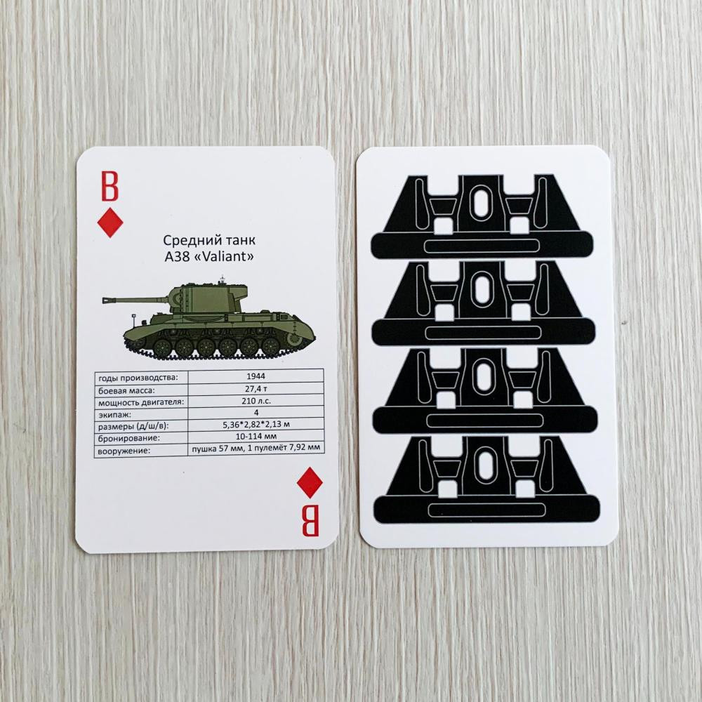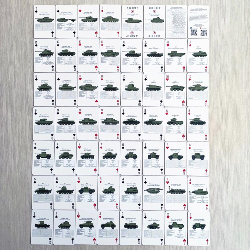Колода содержит 54 игральные карты. На каждой карте размещено изображение бронетехники, принимавшей участие в боевых действиях в годы Второй мировой войны или разработанной и пущенной в производство в этот период, и указаны её основные характеристики: