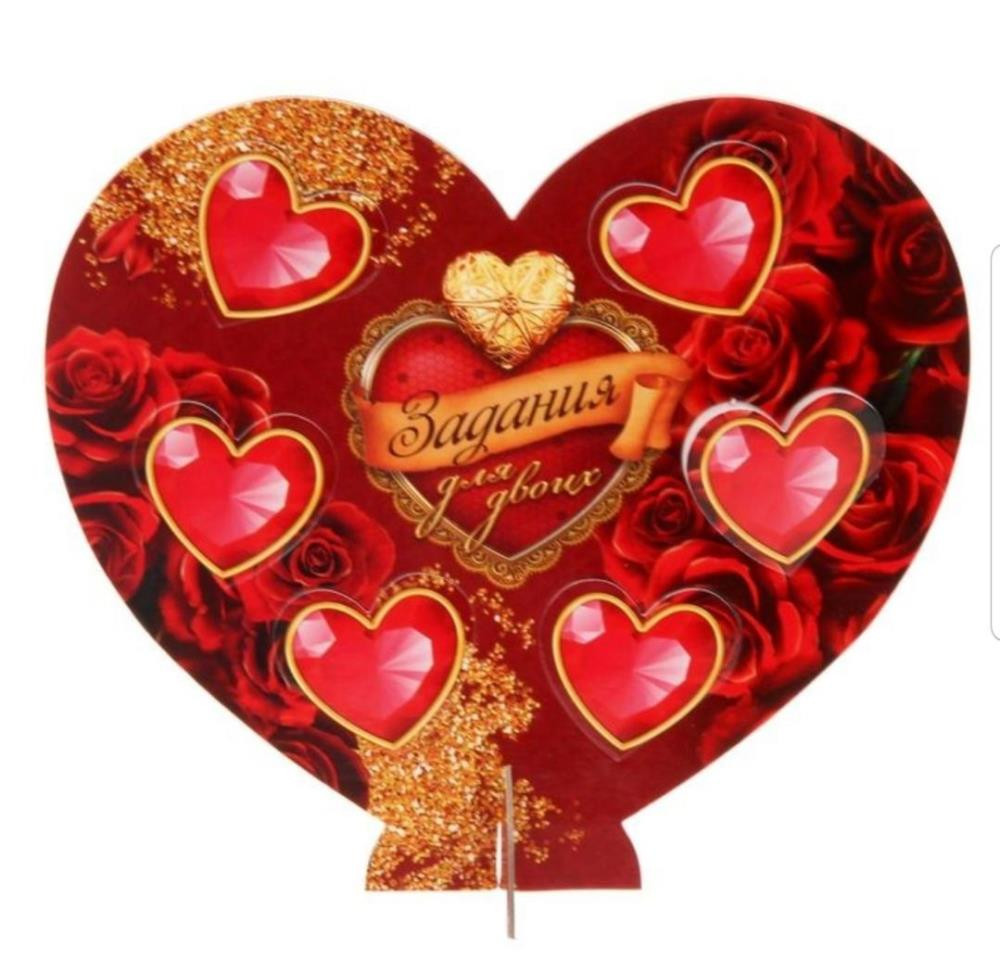 Продается игра романтическая, сердце сувенирное с окошечками "Задания для двоих", 18х16 см.