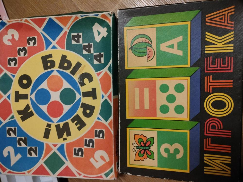 Настольные игры СССР: "Игротека", в коробке.Производство ,,Парус". Состояние новой, листы с карточками не разрезаны, только нет инструкции. Игротека состоит из трёх игр: домино "Сосчитай", "Подбери число" и лото " Составь слово". Цена 500.