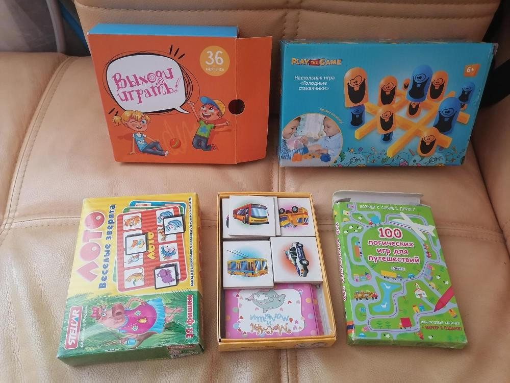 5. "100 логических игр для путешествий" (на некоторых карточках есть следы рисования), 50 шт карточек многоразовых, 150₽