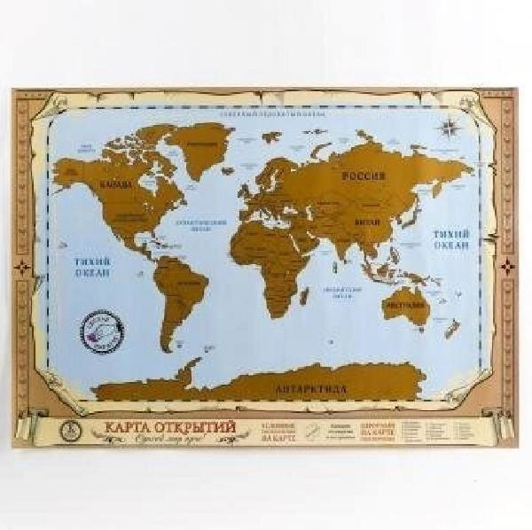 Карта мира - Карта открытий, в тубусе со скретч-слоем, 70х50 см новый