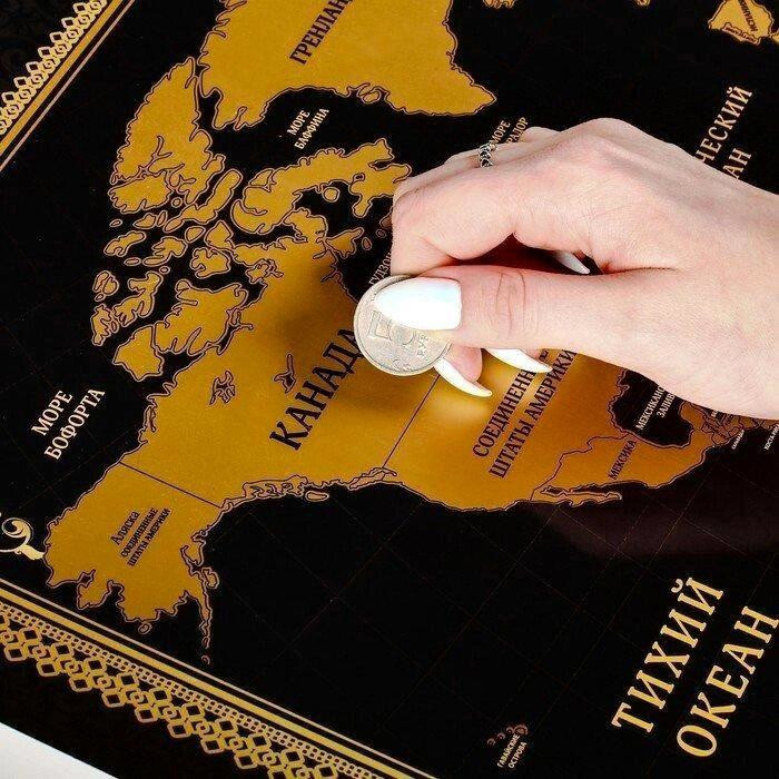 Карта со скретч-слоем в тубусе Карта мира 70х50 см — отличная возможность изучить окружающий нас мир в деталях. На ней можно монеткой стирать защитное покрытие мест, в которых вы побывали. Она позволит получить представление о том, как устроена наша планета.