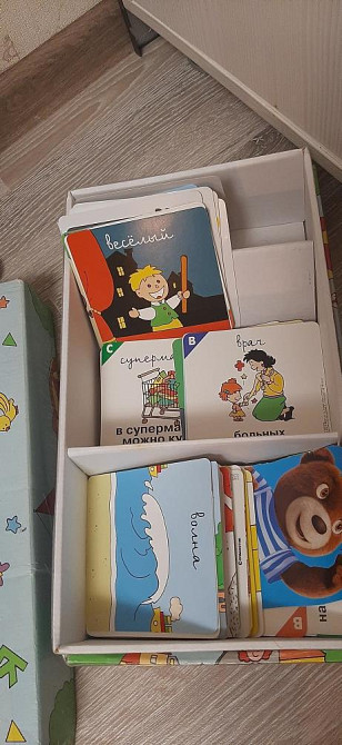 Очень много карточек. Десятки разных игр и заданий, которые можно задавать ребёнку, при помощи этих карточек.