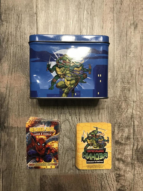 Карточки черепашки-ниндзя и человек паук. Продаю вместе с коробкой.