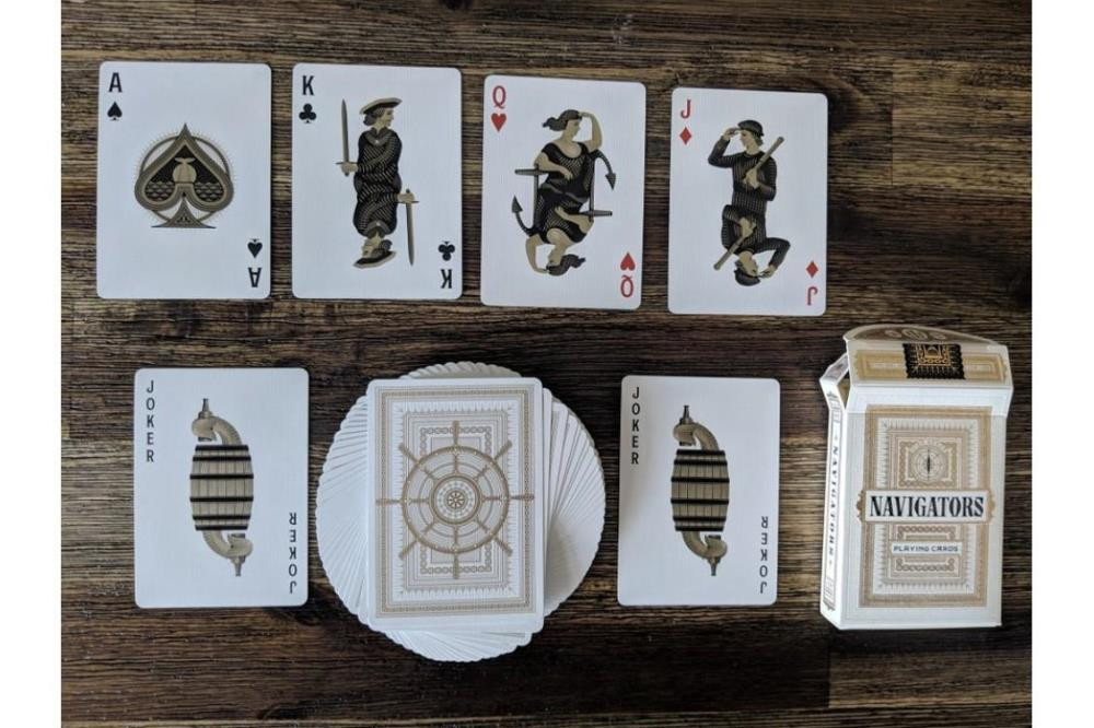 Навигаторы на парусных кораблях были нужны для прокладывания курса, направления по ветру, но в 21 веке мы сами можем выбирать, в какую сторону плыть и куда поворачивать свои паруса. Новая морская колода от Theory11 пытается вдохновить нас на свой собственный путь. Каждая деталь в новой колоде наполнена смыслом и напоминает как раз о тех временах, когда люди с подзорными трубами бороздили моря. Премиум колода от знаменитой студии полностью кастомная: от лиц, до деталей штурвала на рубашке. Эта колода максимально отличается от знакомых вам карт, но при этом сохраняет понятный дизайн, чтобы карты отлично подходили для обычной игры и впечатляющих кардистри.