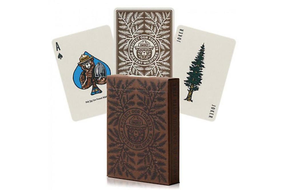 У компании Art of Play вышла новая колода популярных игральных карт Smokey bear, выпущенная только ограниченным тиражом. Всё эта прелесть упакована в элегантную коричневую коробку с изображением медведя.