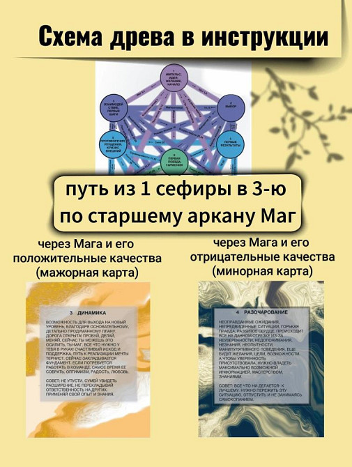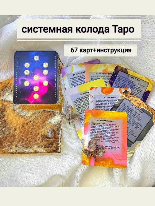 Уникальная авторская колода Таро "Путь по Древу Сефирот" поможет легко и точно ответить на ваши вопросы. Ответы нанесены на карты. Карты Таро "Путь по Древу Сефирот" состоит из 67 карт, матовая ламинация, инструкции и мешочка для хранения. Чрезвычайно легкая для понимания колода(значения нанесены в виде текста), в тоже время, основанная на системе Таро и знаниях о путях по Древу Сефирот. У колоды нет аналогов, это авторская колода. Карты можно использовать в любых раскладах, будь то: карта дня, отношения, работа, ситуационный расклад. Инструкция поможет найти выпавшую карту(по порядковому номеру) на схеме древа и проанализировать в каком отрезке развивается ситуация, энергия какого аркана (старшего или двора) влияет на неё. Философия путей Древа прекрасно ложится на повседневную жизнь, от идеи в первом пункте(сефире) до ее материализации в конечном пункте (сефире). От симпатии до полноценной семьи. На фото можно увидеть диапазон задаваемых вопросов колоде. Можно совмещать ее с другими колодами: Райдера Уэйта, Светлого провидца, Теней, Безумной Луны, Манара, Тотта, метафорическими картами, оракулами, Ленорман, Полной луны, Тайны Светил и т.д.