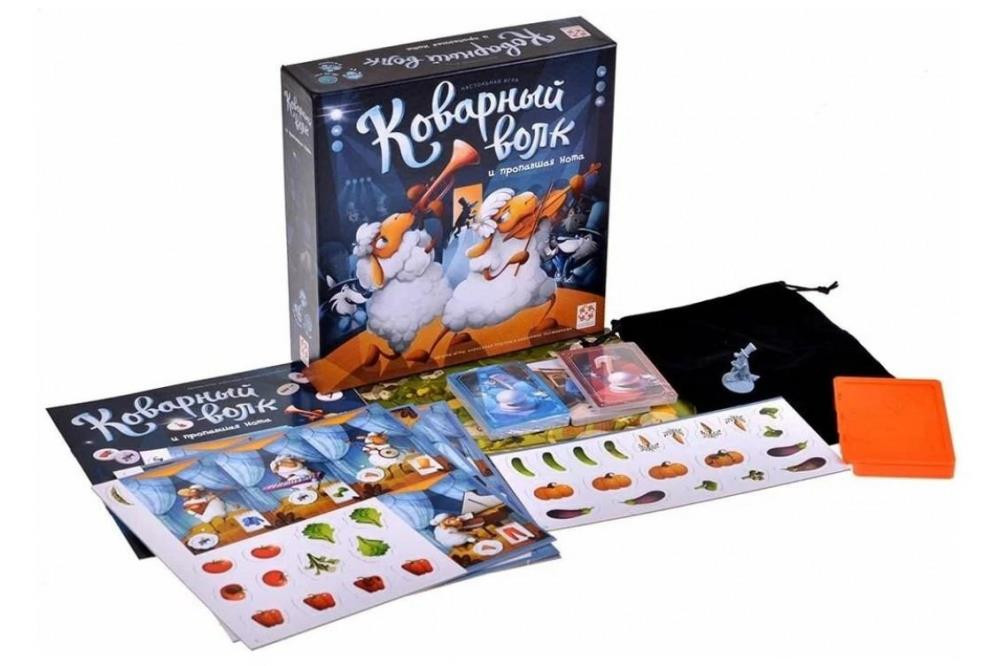 «Коварный волк и пропавшая нота» - кооперативная детская детективная настольная игра, продолжение культовой игры «Коварный лис». Здесь юным сыщикам предстоит вместе выяснить, кто из волков украл главный приз фестиваля и кто из овец ему в этом помог. Играйте все вместе, но ходы совершайте поочерёдно. Задобрите овец и допросите их. Запомните их показания. Соберите достаточно улик, что бы уже точно сказать, кто из волков грабитель. А если вам надоесть играть в обычном режиме, вы можете его усложнить тремя новыми правилами. Дети смогут играть не только с родителями, но могу и сами в своей компании в неё играть.