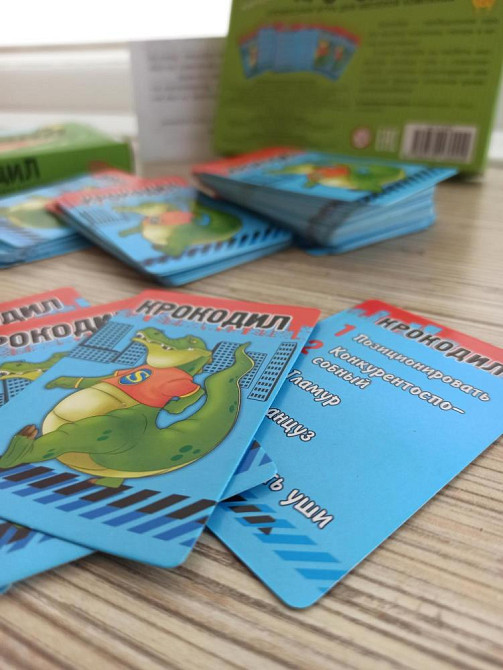 Традиционная игра для весёлой компании "Крокодил". Как играть? Очень просто! Игрокам предстоит с помощью жестов показать слова и словосочетания, указанные в карточках, не издавая при этом ни звука. Побеждает тот, кто успешно справится с заданием. Предназначено для 2-х и более игроков в возрасте от 12 лет.