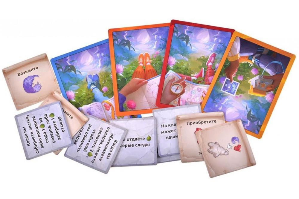 Выберете себе цвет, за который будете играть, и поставьте свой первый след в любое место на игровом поле. Теперь в свой ход вы будете оставлять свои следы на соседних клетках рядом со своими следами. Посещайте разные уголки леса и выполняйте действия. После движения вы можете выполнить действие клетки, заплатив за него листьям. Но если на этой клетки есть чужие следы, то и им придётся заплатить. Или вы можете взять два листочка из запаса. Путешествуйте и собирайте листья и постарайтесь собрать все пять подарков от духов раньше остальных игроков.