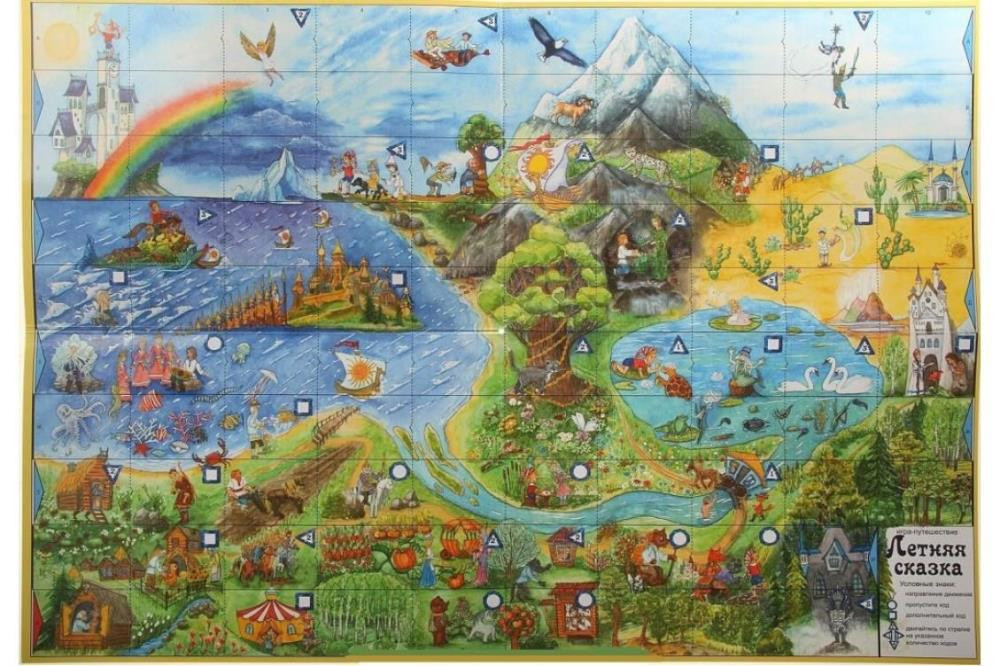 Очередность ходов игроков определяется с помощью считалочки или броска кубика. Количество ходов по полю определяется броском кубика. На поле могут встретиться условные значки изменения хода игры (например, пропустить ход, пройти назад или вперед на определенное количество ходов). Выиграет тот, кто первый дойдет до кукольного театра «Молния». Игра «Летняя сказка» поможет детям провести познавательно свободное время. Но без помощи взрослого им не обойтись.