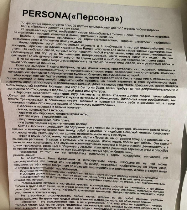 Оригинальные Метафорические карты для работы психологам, консультантам, психотерапевтам, коучам. Набор PERSONA («Персона»): 77 карт-портретов и 33 карты-взаимодействия, инструкция и рекламная брошюра других карт серии. Состояние - идеальное, см.фото. Больше аналогичные товаров у меня в профиле.