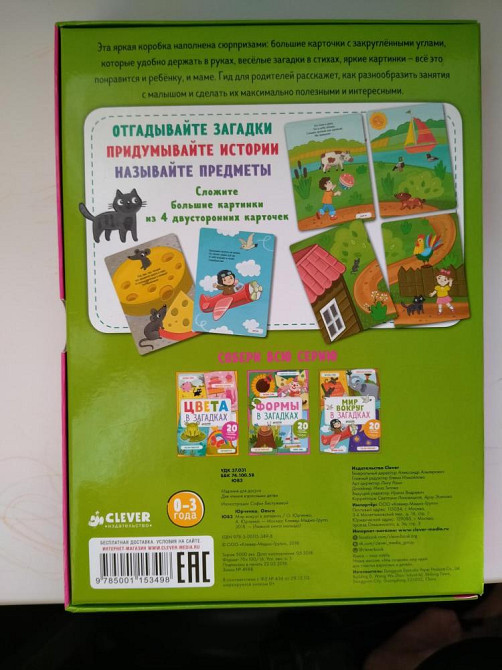 Набор развивающих карточек Мир вокруг в загадках. Серия Главная книга малыша. Издательство Clever.