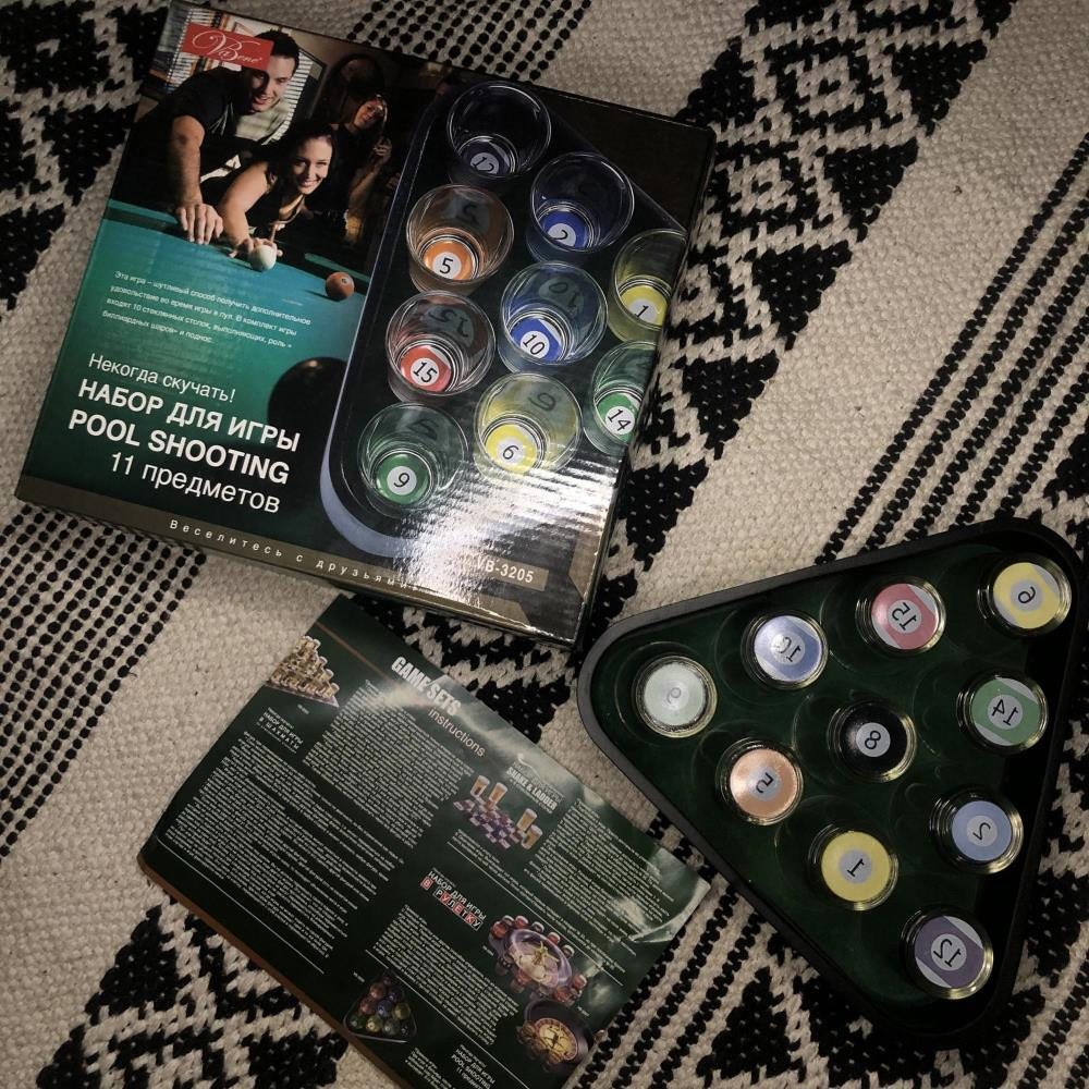 Новый набор для игры в бильярд Рool shooting состоит из 11 предметов (10 стопок и поднос)