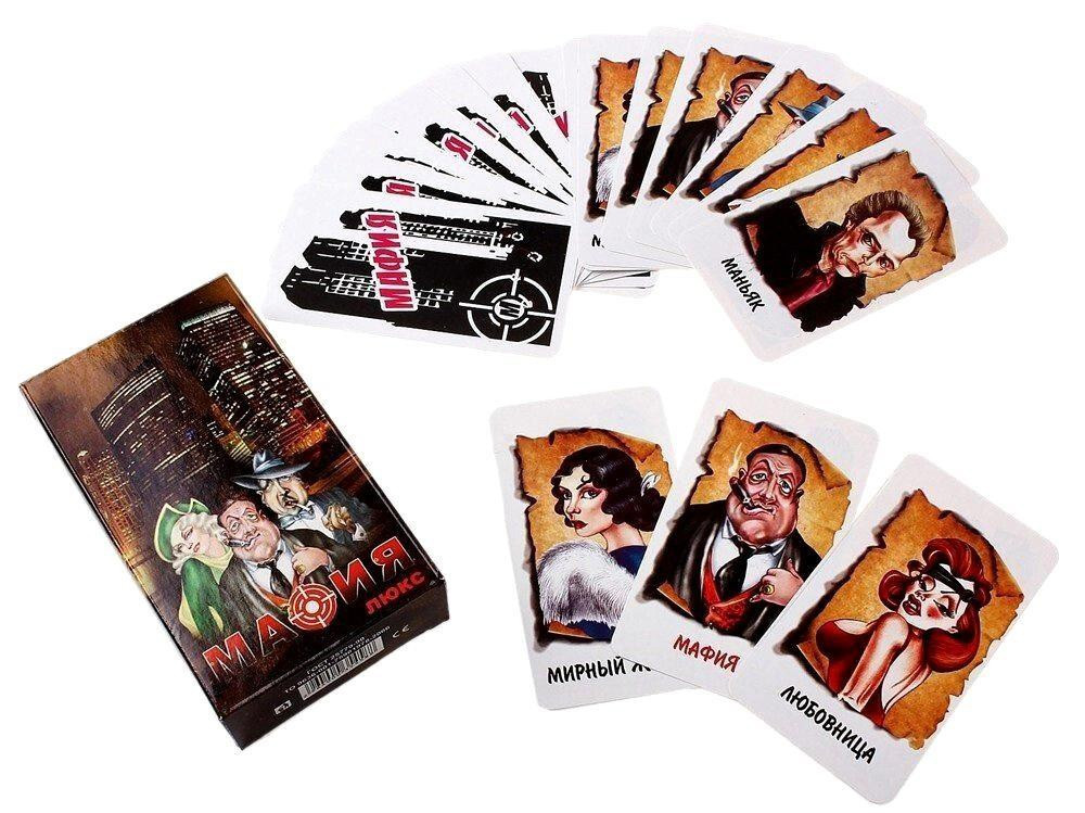 - Карты для игры в Мафию: Мирные жители - 12 шт Мафия - 3 шт Комиссар - 1 шт Ведущий - 1 шт Любовница - 1 шт, Врач - 1 шт, Маньяк - 1 шт.