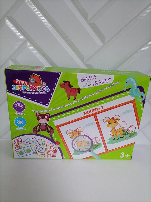 В наборе карточки с рисунком разных уровней сложности, песочные часы, пластиковые колечки.
