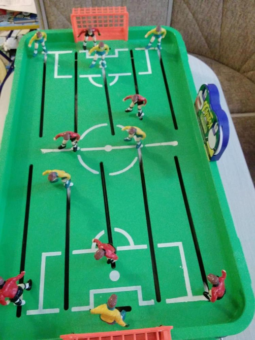 Почти новый настольный футбол. Игроки объемные. Играли буквально пару раз. Потом в гостях поиграли в футбол на приставке. Купили диск FIFA 22 для приставки домой и интерес пропал. Игру можно обратно упаковать в коробку. И будет как из магазина. Это классный подарок на ДР или НГ для ребёнка. Разумный ТОРГ уместен.