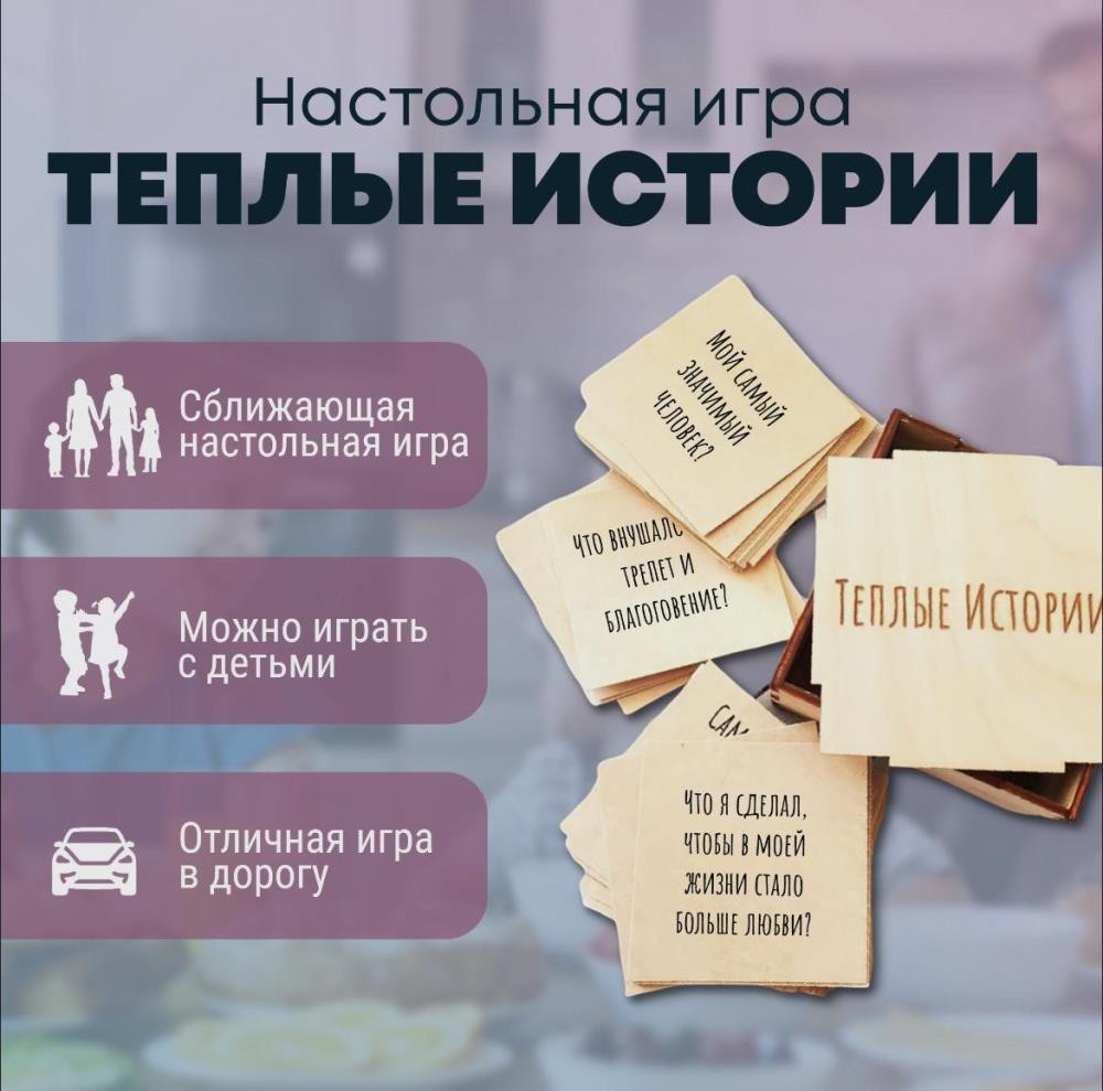 Настольная эмоциональная и интересная игра для взрослых. Теплые истории: для двоих, компании друзей, для семьи, в дорогу, для развлечения, праздника, вечеринки / с карточками, заданиями и вопросами.