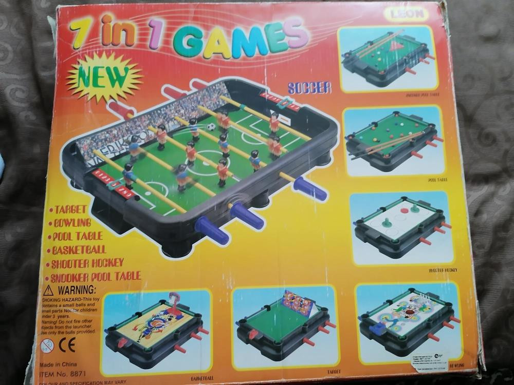 Настольная игра 7 в 1 (футбол, бильярд, баскетбол, мишень, бильярд - снукер, боулинг, хоккей-shooter) . В отличном состоянии. Много энциклопедий, игр, детской одежды. Торг в одни руки. Рассмотрю обмен на МФУ рабочий, шкаф, плед.