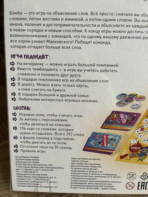 Игра Бомба – интересное настольное состязание на объяснение слов. Вы показываете для своей команды разные понятия тремя способами и стараетесь набрать больше очков.