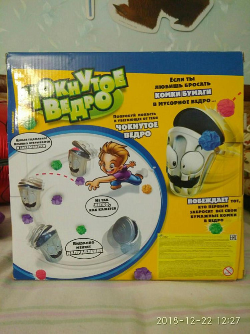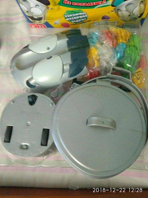 Материал картон, пластик. В комплекте электронное мусорное ведро, разноцветные бумаги, инструкция; батарейки в комплект не входят