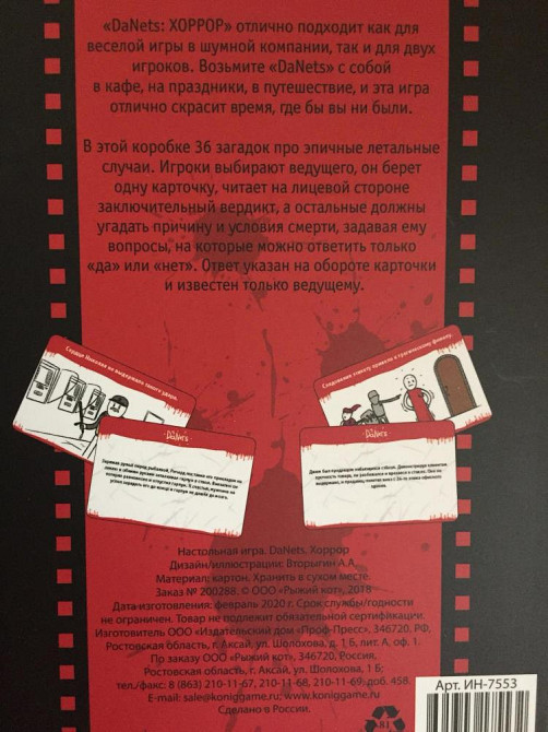 Правила игры на коробке , в комплекте набор карточек и инструкция. Есть ещё одна игра «детективные истории». Две игра за 500 отдам