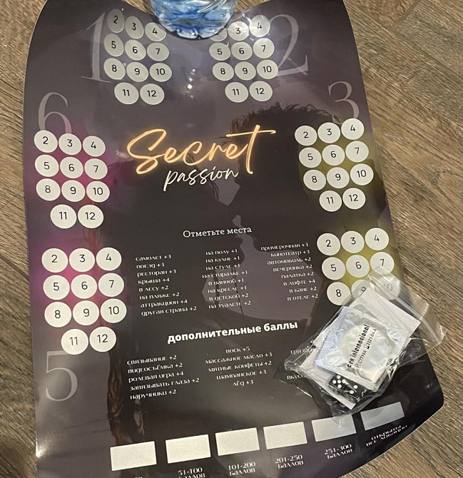 Просто сотрите один из кружочков - под ним находится поза , которую нужно выполнить: В ходе игры отмечайте пройденные места и задания. Насколько вы отвязны, смелы и готовы к экспериментам, устройте свидания 18+! Вы можете оценить это в баллах - каждому пункту присвоен рейтинг - 1 уровень - 1 балл, 2 уровень - 2 балла, 3 уровень 3 балла.В КОМПЛЕКТЕ : плакат и инструкция.Игра упаковывается в прочную НЕпрозрачную коробку. Комплектация с тубусом.