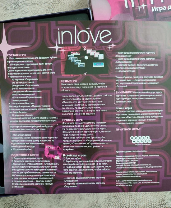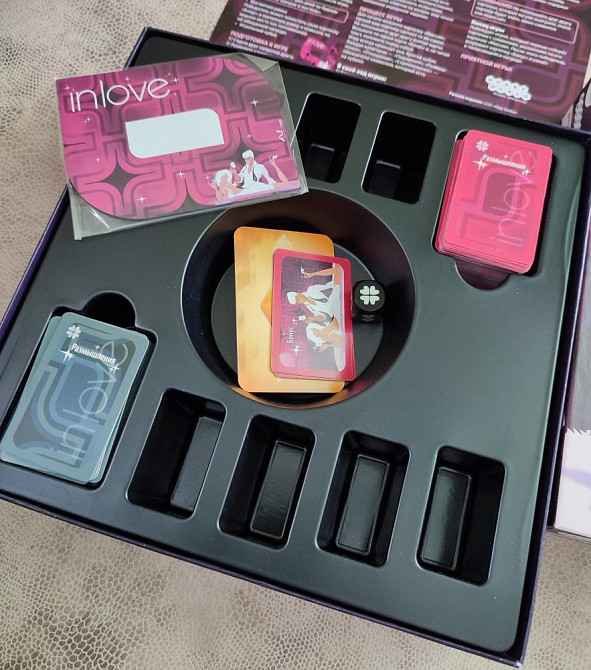 Новая настольная игра In love. В комплекте: инструкция, игральный кубик, магнит, очень много карточек с заданиями для него и для неё. Подарок молодожёнам. Подарок паре на день святого Валентина, подарок влюбленным. Состояние: отличное.