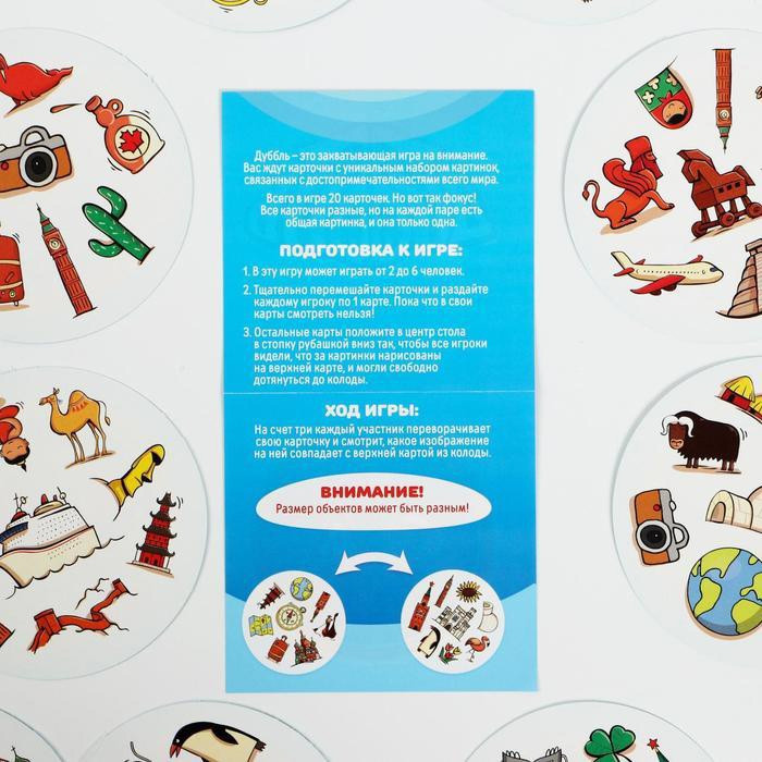 Первый, кто отыщет такую картинку, кричит: «Дуббль!», забирает верхнюю карту из колоды и кладёт её сверху на свою карту. Тем самым он открывает следующую карточку из основной колоды, и теперь совпадения нужно искать уже с другими картинками.