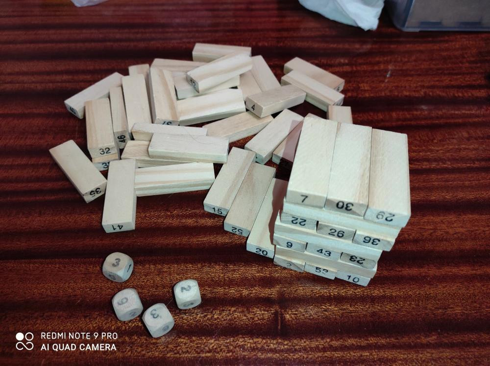 Игра Падающая башня, аналог игры дженга. Без коробки, в хорошем состоянии. 54 брусочка + 4 кубика. Играли недолго